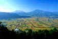 ■■ 九月、短い夏が終り、もう秋の気配。夏のギラギラした輝きが失せ、大気は澄み、天は高く、安定した季節の到来である。物事が成就する時、収穫の時である。カルデラの千枚田は、高みから見るとまるでパッチワーク作品のようだ。