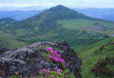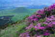 カルデラの千枚田には水が引かれ、光を受けるとキラキラと輝く。山岳ではミヤマキリシマが開花して訪れる人々を魅了する。イワカガミ、リンドウ、マイヅルソウなど草花もいっぱいだ。