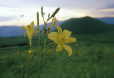 ■■ 七月中旬、梅雨が上がると阿蘇の短い盛夏の始まりだ。青空に浮かぶ真っ白な夏雲と、緑濃い草原の輝き・・これが私の阿蘇の夏のイメージだ。額に汗を流しながら草原を歩いてみよう。カルデラ縁を吹き上げる涼やかな風に包まれてみよう。夕べには、草原のあちこちにユウスゲが精一杯、黄色の花弁を開いているだろう。短い夏を謳歌したい。