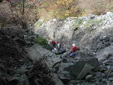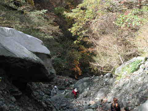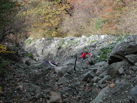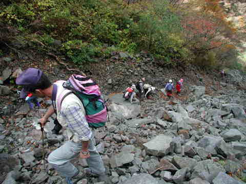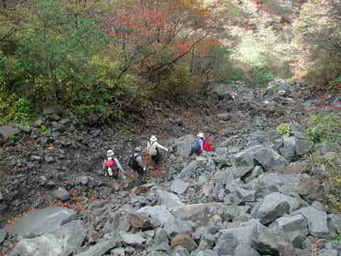 浮石が多く傾斜がある為、落石が頻繁に起こる。 |