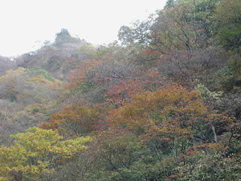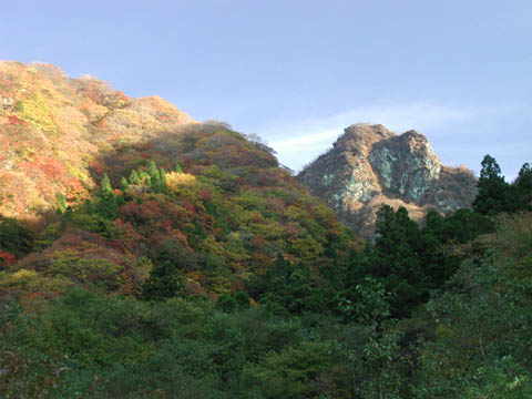 岩壁に張り付いた紅葉。 |