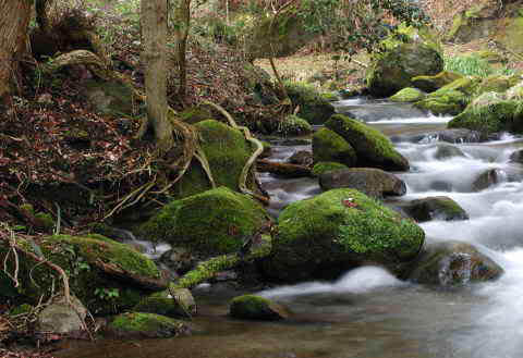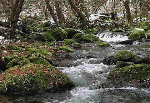水源より下流二千メートルにわたり幾百年を経た原生林と十ヶ所を数える小水源が