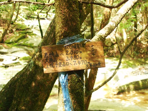 一時間ほどで傾斜が緩くなり右手から権七小屋谷本流と出会う。谷幅が広くなるが今度は、右岸か左岸か迷う。9:55ようやく権七小屋谷出会に着く。一枚岩の上をサラサラと清流が流れている。ここで食事を取り水を補給する。