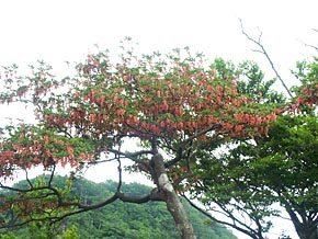 このコースから上がった理由は途中にオオヤマレンゲが開花しているとの情報もあったからです。「溶岩壁」の標識のある場所に咲いていました。 |