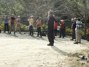 | 三ノ岳公民館の駐車場にて準備体操 |