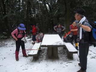 城山登山口駐車場を起点にして石谷山〜九千部山〜城山を周回する。前日は寒い天候だったが、山間部では小雪が降った様子。尾根筋にはうっすらと積雪があり、予想外の雪景色に出会う。九千部山では時間が早すぎたために城山で食事をする。下山後、吉野ヶ里温泉で入湯。O氏の計らいで本来600円のところ350円であった。