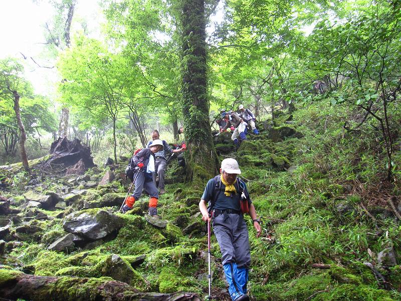 梅雨本番とあってなかなか山行の機会がありませんでしたが、本日はちょうど朝方に雨が上がり13名にて英彦山を周回してきました。雨上がりの登山道は木々の葉っぱや岩コケの緑がしっとりと映え、大変きれいでした。