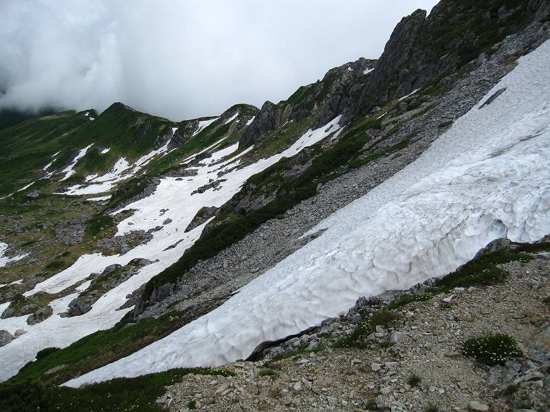 | 赤木岳からの下り。この先、黒部五郎岳まではアップダウンが何箇所か続く。 |