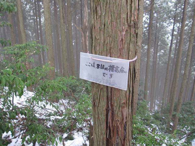| 杉の植林地を僅かに登れば811mピークにいたる。 |