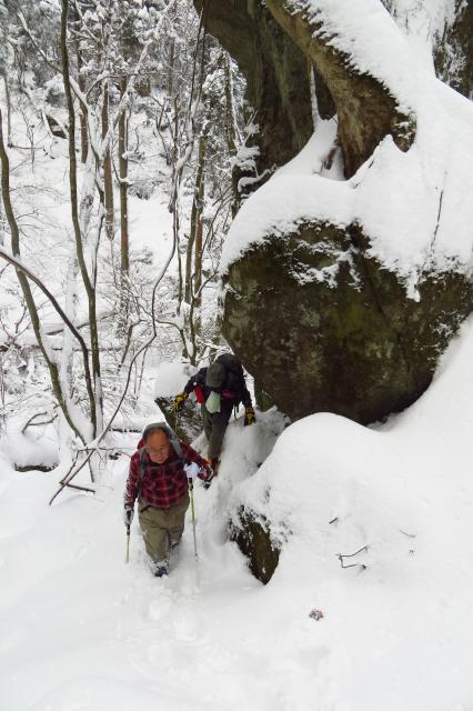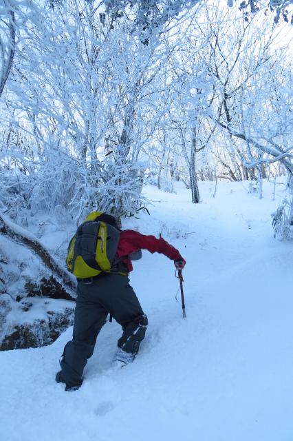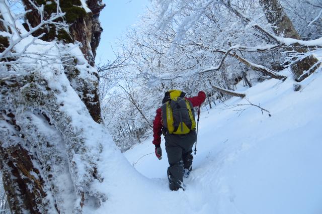 いったんコースを外して別の谷に入ると元に戻れなくなりその谷を詰めて尾根を目指す。