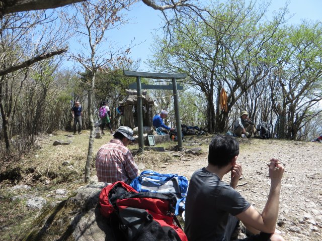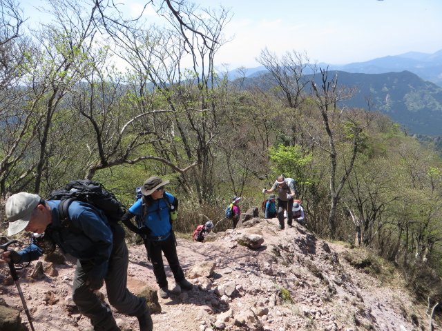 三つのピークのうち真ん中が今日登った南岳です。 【登山日】 2015年4月26日:晴れ 【登山行程&所要時間】 英彦山大権現8:40発〜10:10大岳着〜11:05鬼杉着〜12:15英彦山南岳着12:55発