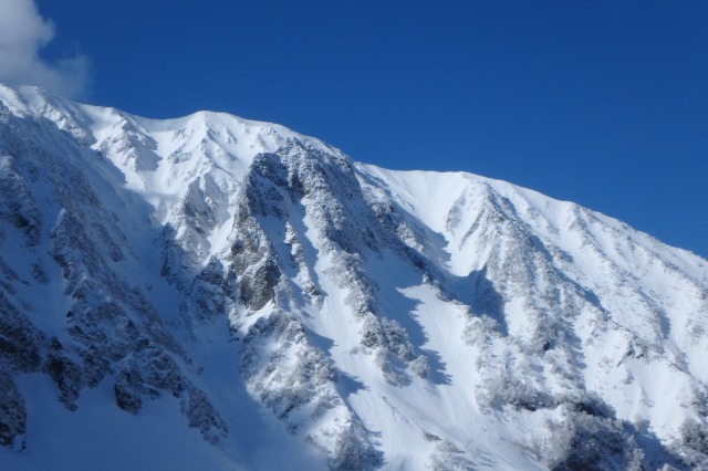 今回は別山バットレス中央稜登攀班と宝珠尾根から天狗ヶ峰登頂班の2班に分かれて登る。 我々は9名にて宝珠尾根から天狗ヶ峰を目指す。 事前の情報では今年の大山は雪が少ないようだ。 山麓のスキー場も雪不足で部分的にしか営業して無いとの事。 ところがここ二三日の冷え込みで昨日は降雪があった模様。 20cmほどの新雪はさらさら真っ白。予期せぬプレゼントを頂いた感じ。 +++++++++++++++++++++++++++++++++++++++++++++++++++++++