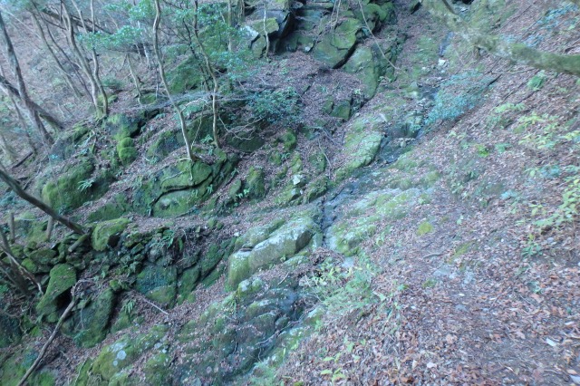 2016年12月2日:晴れ 【登山行程&所要時間】 雷山観音バス停前駐車場7:55〜8:15清賀の滝〜9:15上宮〜10:00雷山11:35〜12:10尾根〜13:25雷山中腹登山道〜14:00駐車場) 【登山コース地図】 画面クリックで拡大します ![]() 【GPXファイルダウンロード(右クリックして保存)】 このリンクをマウスで右クリック(Macの場合はしばらくクリック)して、「対象をファイルに保存」などのメニューを実行してください。 ![]() 夜明けの雷山 ![]() 雷山観音前バス停前にある登山者用駐車場。 広いスペースと綺麗なトイレがあります。 ![]() 雷山観音千如寺の下にある登山口案内標識 ![]() 谷川に沿ってしばらく歩くと林道にでます。 ![]() 林道から5分ほど登れば清賀の滝に到着。 ![]() 二段の清賀の滝 ![]() 清賀の滝から右の尾根に登り上がります。 ![]() 自然林の感じの良い尾根 ![]() 標高700m付近まで尾根を登ると 登山道は山腹の右手をほぼ水平に巻くトラバース道になります。 ![]() トラバース道は3箇所ほどの谷と尾根を横切る。 ![]() 苔むした古い支柱 ![]() 植林地が出てくると ![]() まもなく雷神社上宮に到着 ![]() NTT専用道路の一部が崩壊しているので通行禁止の案内標識が 関連の出入り口にたくさん表示されています。 ![]() 上宮から山頂へ一気に急登。 NTTの無線中継施設や二丈岳が見える。 ![]() 急登を終え山頂部に到着すると朝日が差し込み景色がキラキラしています。 ![]() ふわふわ落ち葉の登山道 ![]() 大岩の苔が綺麗 ![]() 木々の梢の向こうに山頂が見えてきました。 ![]() ミヤコザサとブナの樹皮 ![]() 頂上へ ![]() 着いたかな? ![]() 955.3m雷山山頂到着。すっきりとした青空です。 ![]() 糸島の海 ![]() 脊振山系西側の山 ![]() 飛行機雲がでているが明日は晴れの筈 ![]() 脊振山系東側の山 ![]() はがね山標準電波送信所 ![]() 時間が早いので寄り道をしました。 スキー場があったころ使用されていた建物。現在は避難所、トイレになっています。 ![]() NTT無線中継所の建物と標識 ![]() パラグライダーフライト基地。 雷山山頂よりもはるかに眺めがいいです。 ![]() NTT雷山無線中継所 ![]() もう一度雷山に上り返します。 ![]() 再び山頂へ到着 ![]() 縦走路から振り返り見る雷山 ![]() この地点から縦走路を離れて、左の尾根に入ります。 ![]() 出だしは笹が胸元くらいまでありますが、足下にははっきりした踏み跡があります。 ![]() 10分ほどで笹は低くなってきました。 ![]() 縦走路の稜線が見えます。 ![]() このルートは初めてですがテープはしっかりついていました。 ![]() 猪のお休みどころ? ![]() 何の標識? ![]() 植林地に出ました。 ![]() 林道工事現場 ![]() 井原山・雷山中腹自然歩道の案内板に出合います。 案内にしたがってここで左折します。 ![]() 林道工事中の場所に出ました。 ![]() 階段が使えるようです。 ![]() 登山道として整備されているようですが ![]() 道路から下への通路はまだ出来ていません。 尾根の先端に廻ってみるとすぐ下に標識が僅かに見えたのでその地点から下ります。 ![]() 尾根の先端 ![]() 案内標識 ![]() 植林地の中を下ります。 ![]() 林道に出ると登山道入口に看板がありました。 ![]() 鉄工所脇のこの林道も工事中のようです。 ![]() 林道そばの落葉のイチョウに光が差し込み綺麗 ![]() 雷山観音千如寺が見えてきました。 ![]() 無事駐車場に到着。 井原山からの縦走で雷山には何度も来てましたが、下から登ったのは10年ぶりでした。 下山に使った尾根は初めてだったのですが、なかなか良い尾根でした。 地形図には破線で表示されていますが、一般的な登山道としては現在使用されていません。 そのため案内表示などは皆無ですが、赤テープが随所についています。 尾根自体も単純なのでわかりやすいと思います。 私の好きな九州の山 |