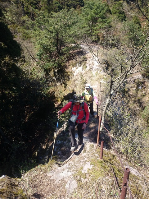 2017年4月24日:晴れ 【登山コース地図】 画面クリックで拡大します ![]() gpsログ不調のため南岳以下は以前のログと結合処理しています 【GPXファイルダウンロード】 このリンクをマウスで右クリック(Macの場合はしばらくクリック)して、 「対象をファイルに保存」などのメニューを実行してください。 ![]() 英彦山大権現の駐車場は登山者の利用禁止との事 ガラガラなんですけどね〜 ![]() ミツマタの群落は盛りを過ぎて白っぽくなっていました ![]() 泉蔵坊の石像 ![]() 泉蔵坊のモミの大木 ![]() 清浄な空気が漂う玉屋神社 ![]() 玉屋神社からの景色、中央は黒岳。 ![]() 玉屋神社から尾根ルートに戻る 尾根の大岩を巻く ![]() 展望露岩から望む桜絵巻 クリックで拡大 ![]() 露岩を通過 ![]() 登山道を横切り更に尾根を進む ![]() 露岩を下る ![]() 天狗の鼻を上る ![]() 天狗の鼻から南岳を望む ![]() 天狗の鼻から ![]() 天狗の鼻から 新芽が美しい ![]() 天狗の鼻を下る ![]() 行者尾根取り付き ![]() 山桜がまだ残っていました ![]() シャクナゲの花芽と岩棚 いつもながら天狗の鼻からここまでの区間は難路のため撮影の余裕がありません ![]() 枯れた笹薮 ![]() 岳滅鬼山 ![]() 岩棚から上ってきた尾根を振り返り見る ![]() 青空バックにタムシバが綺麗 ![]() ササヤブを抜ける ![]() 黄色の花はアブラチャン? ![]() 行者堂で食事をして中岳へ ![]() 南岳へ ![]() ![]() 南岳にて ![]() 鬼の舌を下る ![]() 奇岩 ![]() 下ってきたルート 南岳から鬼の舌付近は断崖であることが良くわかります ![]() ゆったりとして雰囲気の良い鹿の角山頂部 ![]() 籠水峠の大岩壁上部にゲンカイツツジがひっそりと咲いていました ![]() 籠水峠から大岩壁を見上げる 本日は天候に恵まれ春の英彦山を満喫した一日でした ![]() 私の好きな九州の山 |