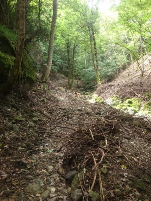 ![]() 野峠から出発 ![]() 名前は知らないのですが、本日はこの植物を多く目にしました ![]() 最初の尾根に登り上がる。 ここで最初のミスコース、左の尾根を下ってしまいました。 目的の尾根と勘違いしていました。 早く気づいたので僅かな上り返しで済みました。 ![]() 難所のトラバース地点。 古いトラロープにすがって岩壁をよじ登って尾根に出ます。 ![]() 尾根に出て間もないこの地点も間違いやすいポイント。 尾根なりに進むと間違い。 左側の痩せた尾根がコースです。 ![]() 痩せ尾根を歩く ![]() 露岩も出現 英彦山特有?の手がかり足がかりのとりやすい岩なので登りやすいです。 ![]() 小ピーク ![]() 自然林の歩きやすい尾根道です ![]() 風で落ちたどんぐり ![]() 871m標高点の標石 ![]() モミや栂の大木が目立つ尾根の登山道は良い感じです。 ![]() 栂の大木 ![]() 尾根を下ってゆくと目の前に端正な三陀山の山容が見えてきます。 ![]() 青々とした栗の実がたわわになっていました ![]() 開き始めたばかりの芒の穂と三陀山 ![]() 最低鞍部にある目印の標識 ![]() 最低鞍部を直進すれば三陀山へ ![]() 本日はここから右折して林道に下ります ![]() 小谷を下ると林道終点に降りてきます ![]() この林道はきれいに整備されていました 作業小屋 ![]() ここにも群生していました ![]() 林道の三叉路に出ました。 本日は右折して林道を少し上ります ![]() この地点から左の谷に下ります。 ![]() 降下点の手前右手に一枚岩の滝のような水流があります ![]() 綺麗なナメの沢を渡ります ![]() 以前はなかったのですが目的の沢に沿って作業道が作られています。 ![]() このプレートは以前からありました ![]() 作業道が続いています ![]() 以前来たときは綺麗な沢だった印象でしたが 今回は大水のせいもあるのでしょうが 流木があたこちで堰を作っていて見る影もありません。 ![]() この付近で植林の伐採を行っているようです。 作業道はこの先で終わっていました。 ![]() 沢沿いに歩きます ![]() 炭焼き窯跡 ![]() 水流がなくなってきました ![]() 谷の最奥付近 ![]() ここから左の尾根に上がります ![]() 写真ではわかりにくいのですが強烈な急勾配です。 足下もズルズルなので大変です。 立ち木や根っこで確保しながら上ります。 ![]() 必死で稜線まで登り上がりました。 ![]() 一息入れて鷹ノ巣山三峰へ続く尾根道を歩きます ![]() 鷹ノ巣山三峰はパスしてこれから野峠に向います。 鷹ノ巣山の基部付近は迷いやすい地形なので注意が必要です。 ![]() 倒木や岩に付いた苔が大変美しい苔の森です ![]() ![]() ![]() ![]() ![]() ![]() 左はエスケープルート 野峠は右 ![]() ここからしばらくこんな露岩が何箇所も出てきます ![]() 最後の露岩以外は岩の上を歩けます ![]() 露岩から見えるこの山は三陀山でしょう。 ![]() 露岩から望む鷹ノ巣三峰 ![]() ![]() ![]() この露岩は絶壁で降りることが出来ないので戻って巻きました。 ![]() 無事、登山口に戻ってきました。 このコースは距離は短いもののけっこうタフなコースでした。