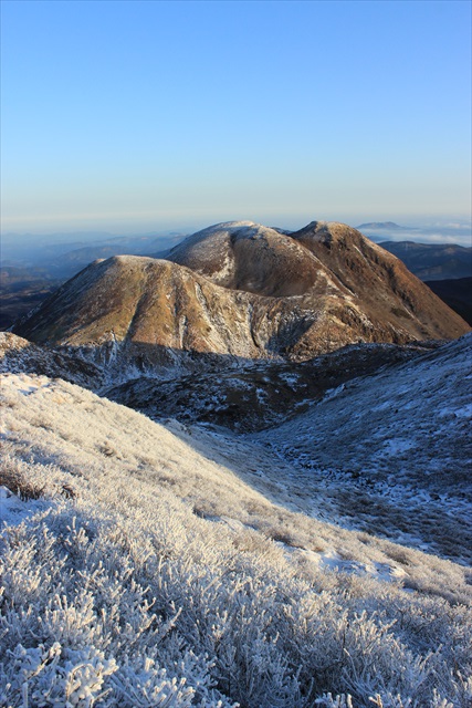 冬季九重山黎明(天狗ヶ城、御池、星生岩尾根) ![]() 天狗ヶ城より中岳越しの日の出 【登山日】