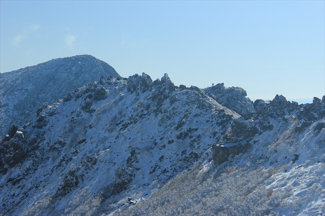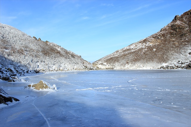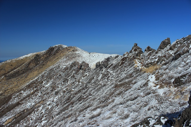 ![]() 三日月と稲星山と青黒くみえている御池 ![]() 御池、稲星山、祖母山系 ![]() 薄明の中青白くたたずむ星生山が印象的だった ![]() 雲海に浮かぶ由布鶴見と平治岳 ![]() やわらかいグラデーションの中 どっしりと横たわる大船山 ![]() 日の出を待つ中岳 ![]() 凍れる御池 ![]() 日の出前の清々しい空気に包まれて。 先週は大勢のカメラマンだったが本日はもう一人の男性のみで静か。 ![]() 夜明け前のなんだか神々しい雰囲気が漂う。 ![]() いよいよご来光! 白い霧氷にぱっと赤みがさす。 ![]() 日の出直後の短い時間帯にいろんなシーンをたくさん撮りたい。 ![]() ズームして見たりタテヨコ変えて見たり。 ![]() 朝日に輝く純白の霧氷と御池 ![]() 前景、中景、遠景、三点セットで決まったかな? ![]() 多分レンズのフレアーなんだろうが光の帯が降ってきてるみたいだ。 ![]() すっきりハンサムな三俣山 ![]() 霧氷の状態がちょっと残念だが・・。 ![]() 半円の模様がアクセントになっている。 ![]() 輝く御池 ![]() 完璧凍結 ![]() 湖面に走るこの長い亀裂はプレッシャーリッジでは無いだろうか? 気温の変化で氷が緩んだり締まったりすることで発生して 諏訪湖では御神渡りとして有名だ。 ![]() 青空と御池 ![]() 星生崎と御池 ![]() 池の小屋で軽く食事。 本日は登山者は少なく私一人だけでした。 ![]() 池の小屋の上の台地から見る吊り尾根。 ![]() 御池と中岳 ![]() 台地を回って御池を鑑賞。 ![]() 霧氷と御池。 本日はこれ以外にも御池の写真を随分たくさん撮りました。 ![]() さて一通り撮りたいシーンを撮りました。 下山はどうしよう、北千里ヶ浜から大曲がりに下る事も考えたのですが、 牧ノ戸峠までの上り返しを嫌って 結局、星生尾根に向かいました。 ![]() 三俣山と天狗ヶ城のスカイラインを額縁効果に見立てて。 ![]() 硫黄山と三俣山 ![]() 星生崎に登る途中から阿蘇五岳。 中岳から小さく噴煙があがっています。 ![]() 天狗ヶ城北面と平治岳 ![]() 星生崎から九重連峰の盟主、久住山を望む。 久住山は西側から見るとピラミダスな山容でカッコ良い。 ![]() 星生岩尾根。 ![]() 岩峰に付いた霧氷が青空に映えて美しい。 ![]() 星生岩尾根と霧氷の山肌 ![]() 可愛い!! ![]() 窓! ![]() 青空に咆哮するイルカに見えました。 ![]() 岩尾根に登山者一人。 ![]() 久住山、稲星山、天狗ヶ城そろい踏み。 ![]() 星生山へ ![]() 大船山をズームアップ。 写真で見ると凄い壁に見えます。 ![]() 久住山と星生岩尾根。 ![]() 三俣山、平治岳、大船山。 九重連山の花形スター達。 ![]() 星生山山頂から鉱山道路側のガレ谷。 ![]() 大鷲が羽を広げてこちらに飛んでくるような、 そんなイメージが湧きました。 久々の撮影日和にシャッター回数が増えて終わってみれば 撮影枚数750枚はちょっと多すぎ? ![]() 私の好きな九州の山 |