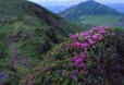 カルデラの千枚田には水が引かれ、光を受けるとキラキラと輝く。山岳ではミヤマキリシマが開花して訪れる人々を魅了する。イワカガミ、リンドウ、マイヅルソウなど草花もいっぱいだ。