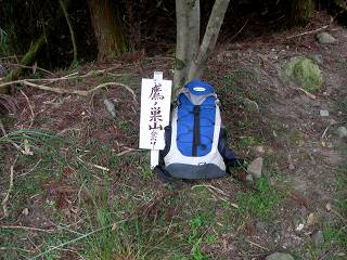 写真153 ・・鷹ノ巣山登山口は 野峠三叉路より少し豊前坊方向に戻った 看板の裏にあります。今は赤テープが殆ど付いていませんが踏み跡が続いています。入山後すぐ、道を間違えてしまいました。