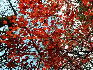 写真189 ・・午後より、青空が見え始め 登山道の紅葉が青空に映えています。