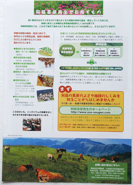 阿蘇の草原再生に関する12頁のパンフレットです。