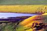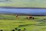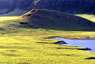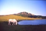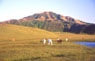 ■視覚的にはわかり難いが、実は草千里ヶ浜も火口跡だ。直径約1000mの広く浅い二重火口になっている。草千里ヶ浜の背後の、端正な形をした烏帽子岳には、火口跡が見られないが、草千里ヶ浜火山の噴火の際に、山体が崩壊したのではないかと言われている。 |