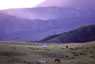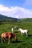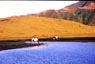 ■広い草千里ヶ浜の水辺で、静かに草を食む牛馬の姿は、阿蘇の景観の代表的なものといえよう。ビジターセンターには、雨の日も、風の日も、霧の日も、観光バスがズラリと並んでいる。
