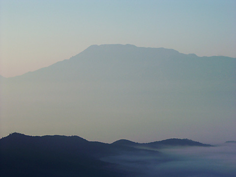 望遠で遠くの高岳を引き寄せて手前の山の峰とバランスの良さそうな所を切り取ってみました。