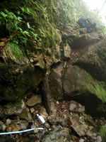 9:44 10:08/天狗の岩屋/霧雨がひどくなりここで雨着を着る 9:55/天狗の水場(水量多し)