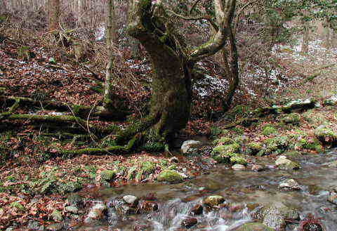 水源より下流二千メートルにわたり幾百年を経た原生林と十ヶ所を数える小水源が