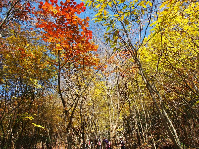 中山仙境の マユミの紅葉は、こんな感じです。ノコギリ山(田原山)に比べれば、紅葉するマユミのスケールは さほどではあませんが、景観は スケール雄大。